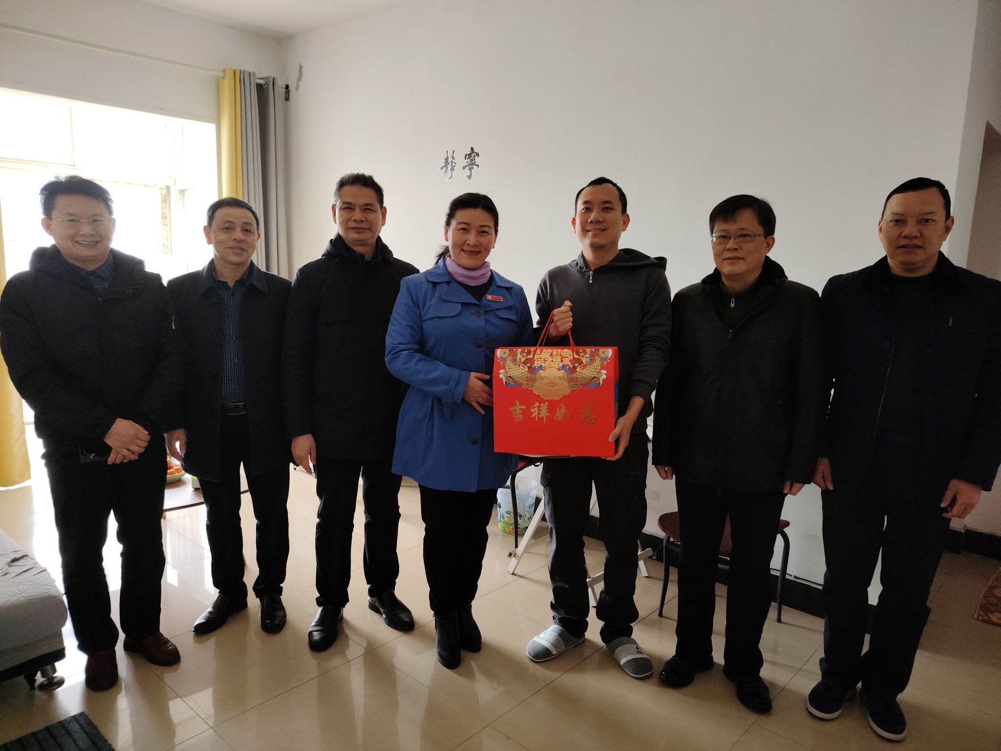 在美籍外教Angel家中,廖岚详细询问他在校工作和生活的情况,Angel对学校的慰问非常感动,并表示在华生活二十余年的他早已适应中国的生活,对学校各方面都很满意。在马来西亚籍博士后Wong Boon Hui家中,廖岚对Wong博士寒假留校继续潜心实验表示赞赏,并祝愿他在科研上攀登高峰。Wong博士表示学校和学院的领导和同事都非常友好,给他提供了很多帮助,在校工作和生活都很愉快。廖岚一行向外籍教师致以节日的问候,祝愿他们过一个欢乐祥和的新年。