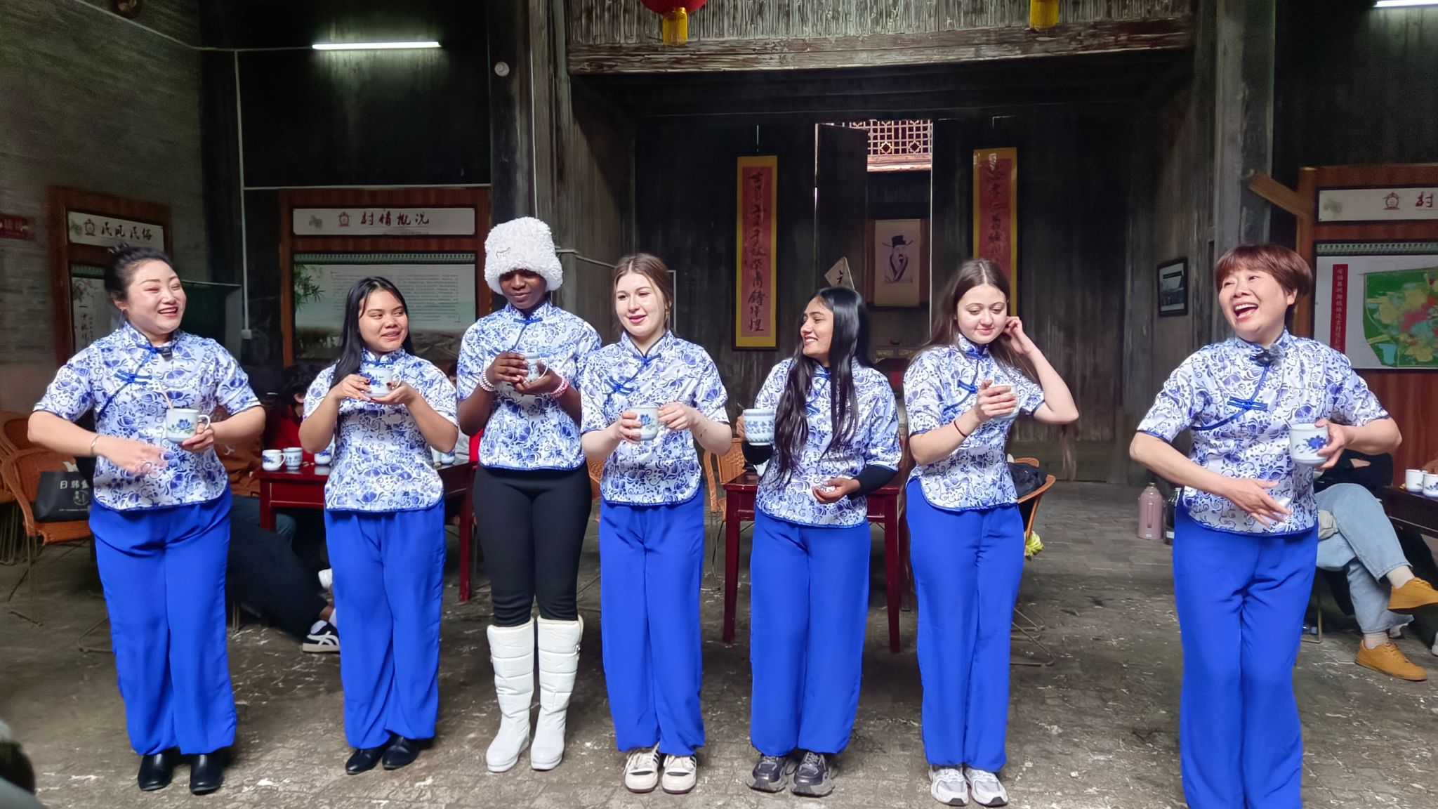 留学生们围坐在一起,听着“表嫂”介绍茶的制作工艺,喝着表嫂茶,跟着表嫂们唱歌跳舞。表嫂茶不仅是一种地域特色浓郁的茶事习俗,也是南乡农村妇女之间积极健康的社交方式,有利于营造良好的邻里关系,因此也称作“团结茶”“和谐茶”。在浓郁的茶香与欢快的歌声中,大家不仅加深了对表嫂茶的认识,更体会到了中国乡村独特的风土人情。