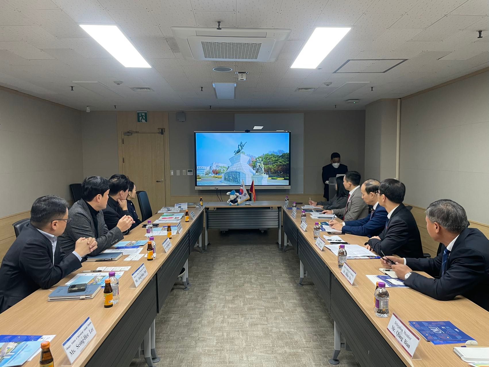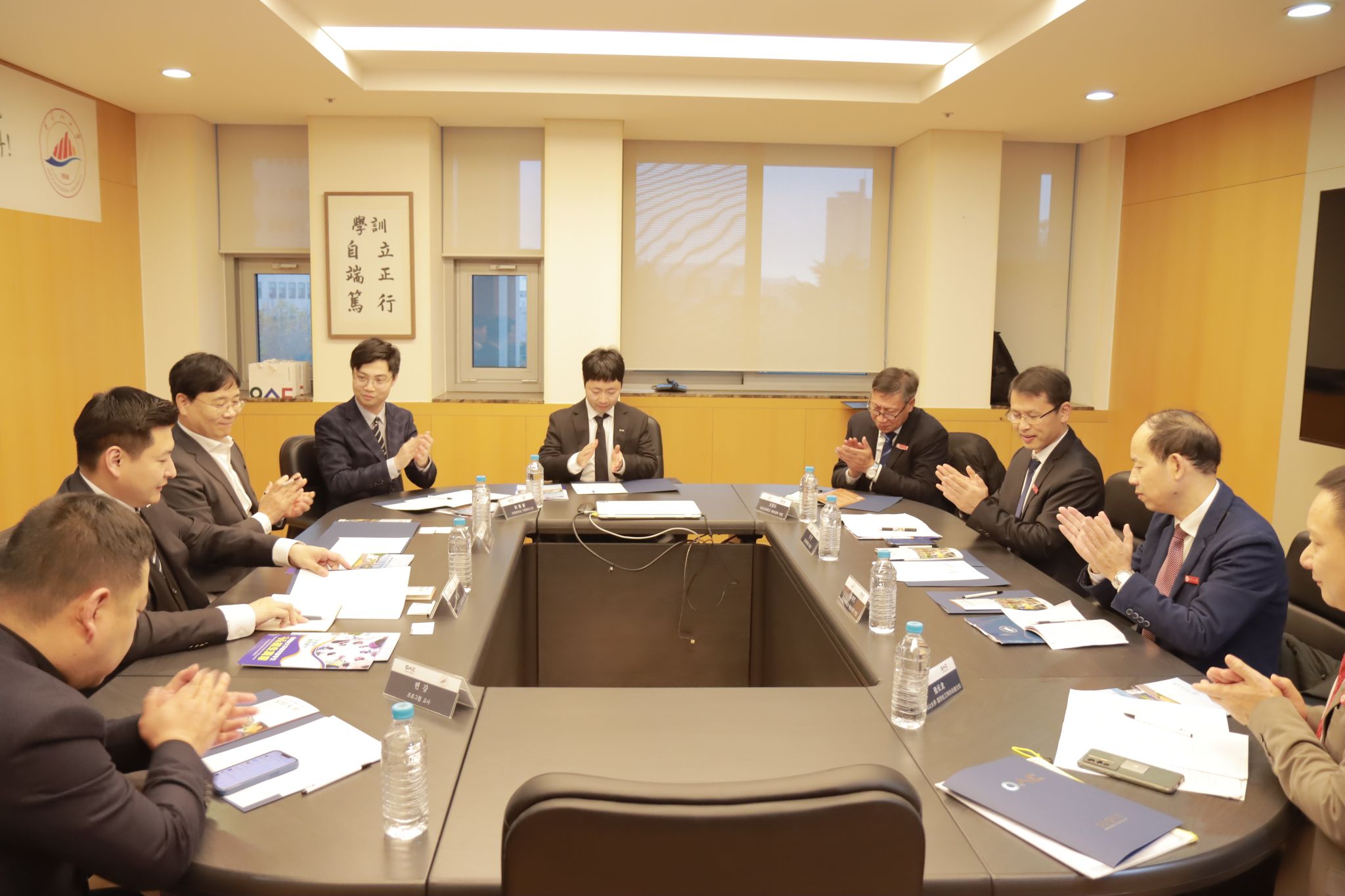 最后,代表团访问了韩国又松大学。该校众多专业采用英文授课,曾被韩国教育部评为“国际化能力先进大学”,同时被认证为“留学生招生管理优秀大学”,2018年获中国教育部留学服务中心颁发的“优秀海外合作伙伴奖”。代表团与该校入学处处长朴志斌、中国事务处长刘念等进行了洽谈交流,双方就两校硕士生导师互聘、博士研究生“2+X”项目、联合开展学生人文交流互访等方面展开了交流论证,达成了一致,对方表示会后尽快线上签署两校合作意向协议。座谈会后,代表团还参观考察了该校Solbridge商学院,学院现有国际学生1300余人,先进的国际化办学理念、完善的基础设施设备以及丰富的海外合作办学经验,值得我校学习借鉴。