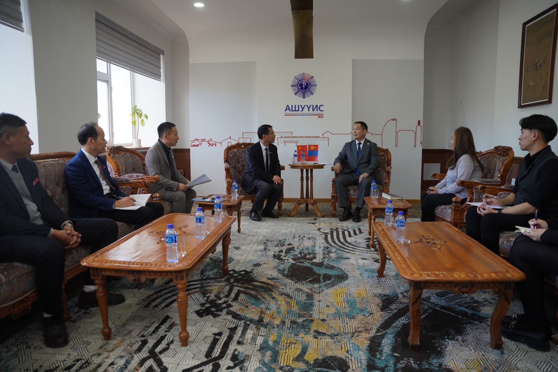 在蒙古期间,冷明一行访问了蒙古国立医科大学,与该校副校长Belegtsaikhan Tsolmon及国际关系处会面并友好座谈,商定两校在医学领域开展师生交流、蒙医与中医交流及联合科研等。在蒙中联合国际大学,冷明一行与该校校长额·恩和太平进行了座谈,两校就学生互换、本升硕、师资交流及来华留学生招生等方面进行了深入探讨,并签订了校际合作协议书。期间,代表团一行还与蒙古Pineapple LLC Mongolia机构就开展来华留学进行了线上洽谈,达成了合作意向。
