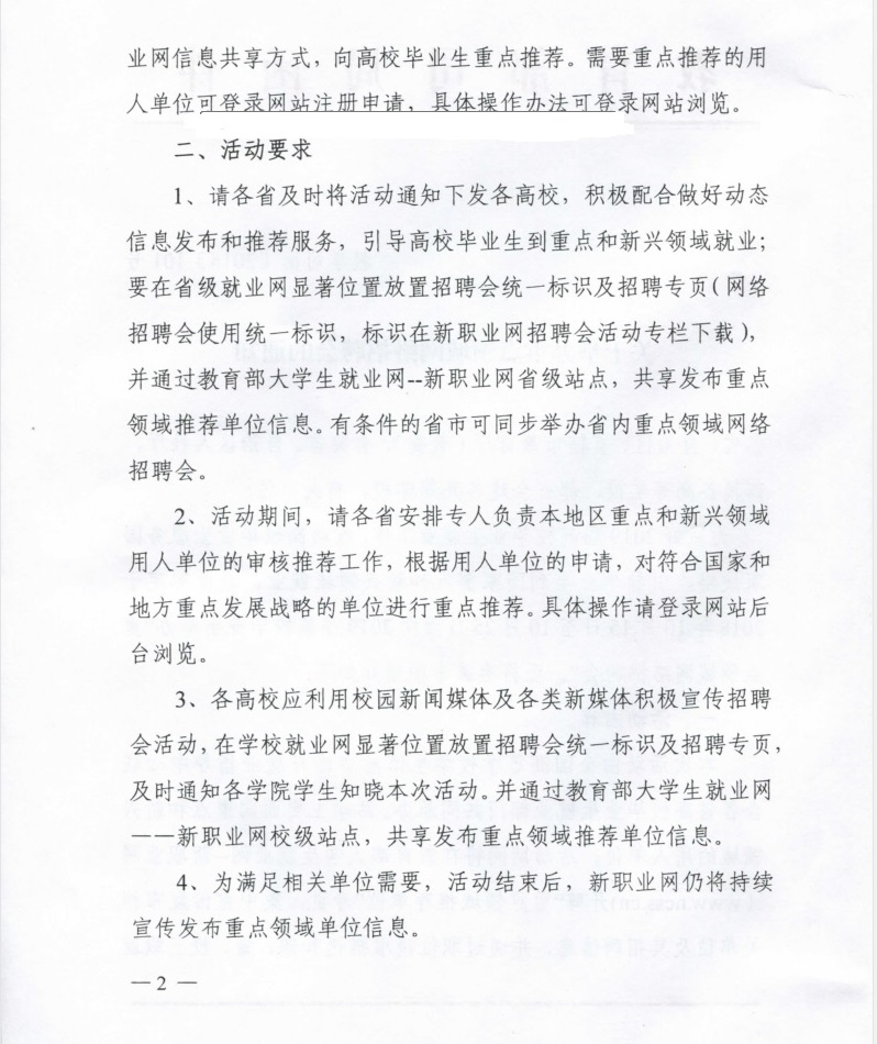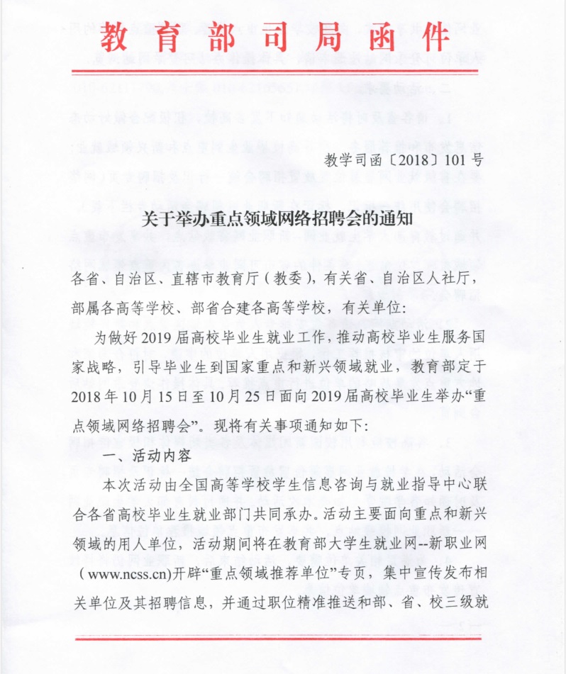教育部关于举办重点领域网络招聘会的通知