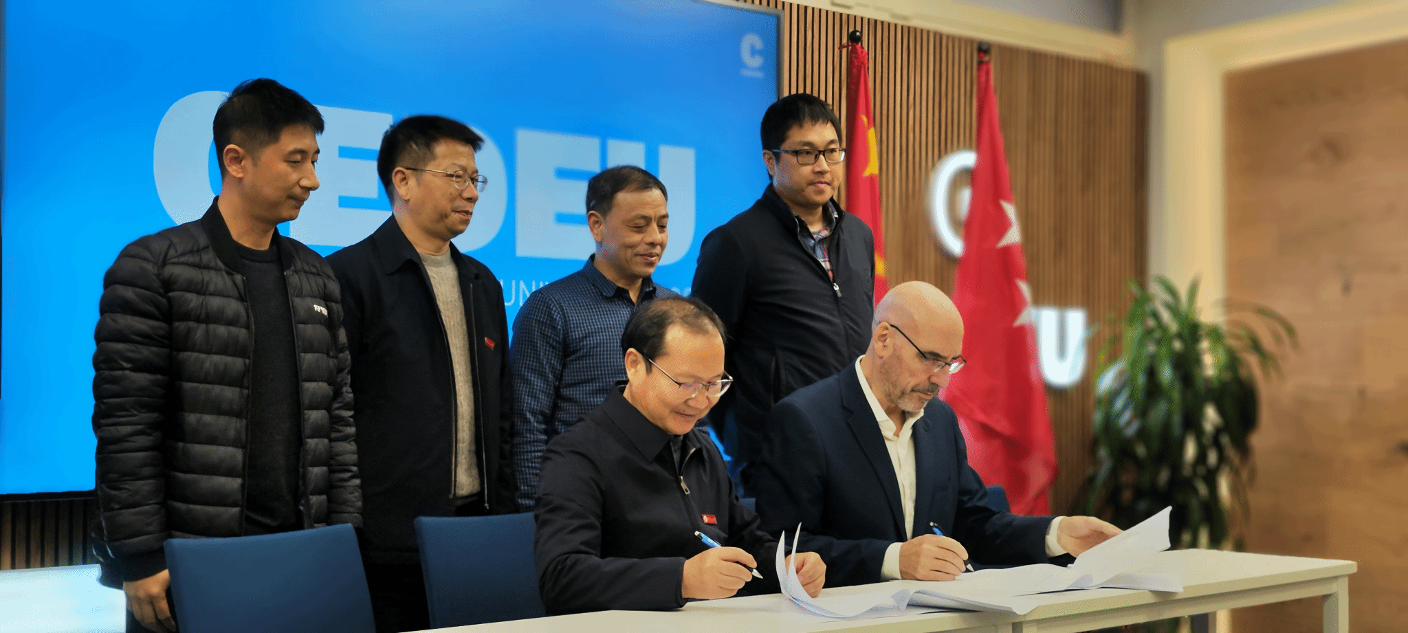 在西班牙胡安卡洛斯国外大学CEDEU学院,该院院长Adolfo sanchez Buron热情接待了黄俭根副校长一行并开展座谈交流。座谈会上,双方介绍了学校的基本情况,并就西班牙语言与文化、商科等专业领域的学生交换、本升硕项目以及教师交流项目进行了商讨,达成了合作共识,并签订了两校合作协议。