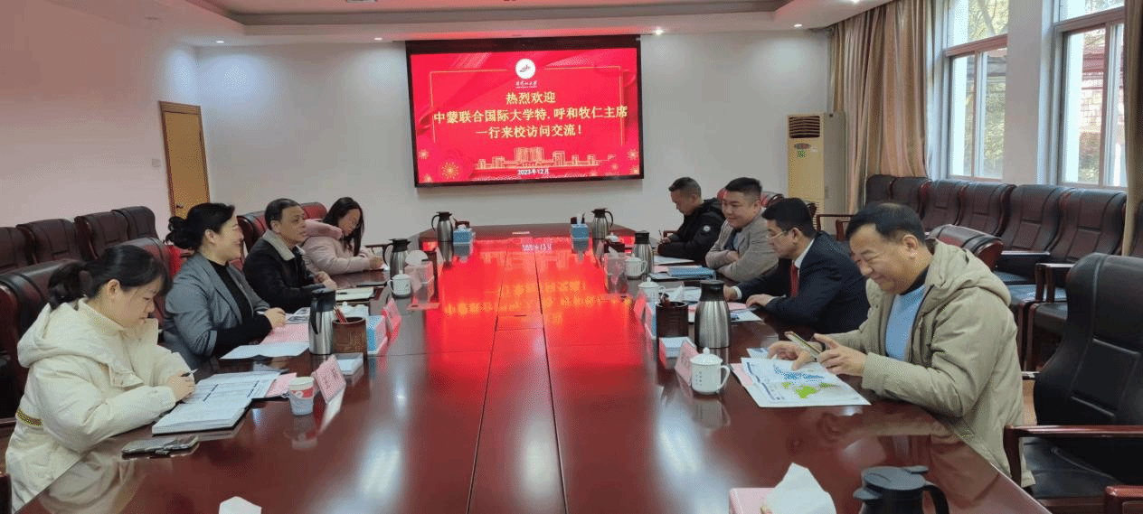 12月21日,中蒙联合国际大学校董会主席特·呼和牧仁、校长额·恩和太平一行4人来我校访问交流,党委常委、副校长廖岚接待了来访一行并出席交流座谈会,我校国际合作与交流处负责人及相关人员参加座谈。