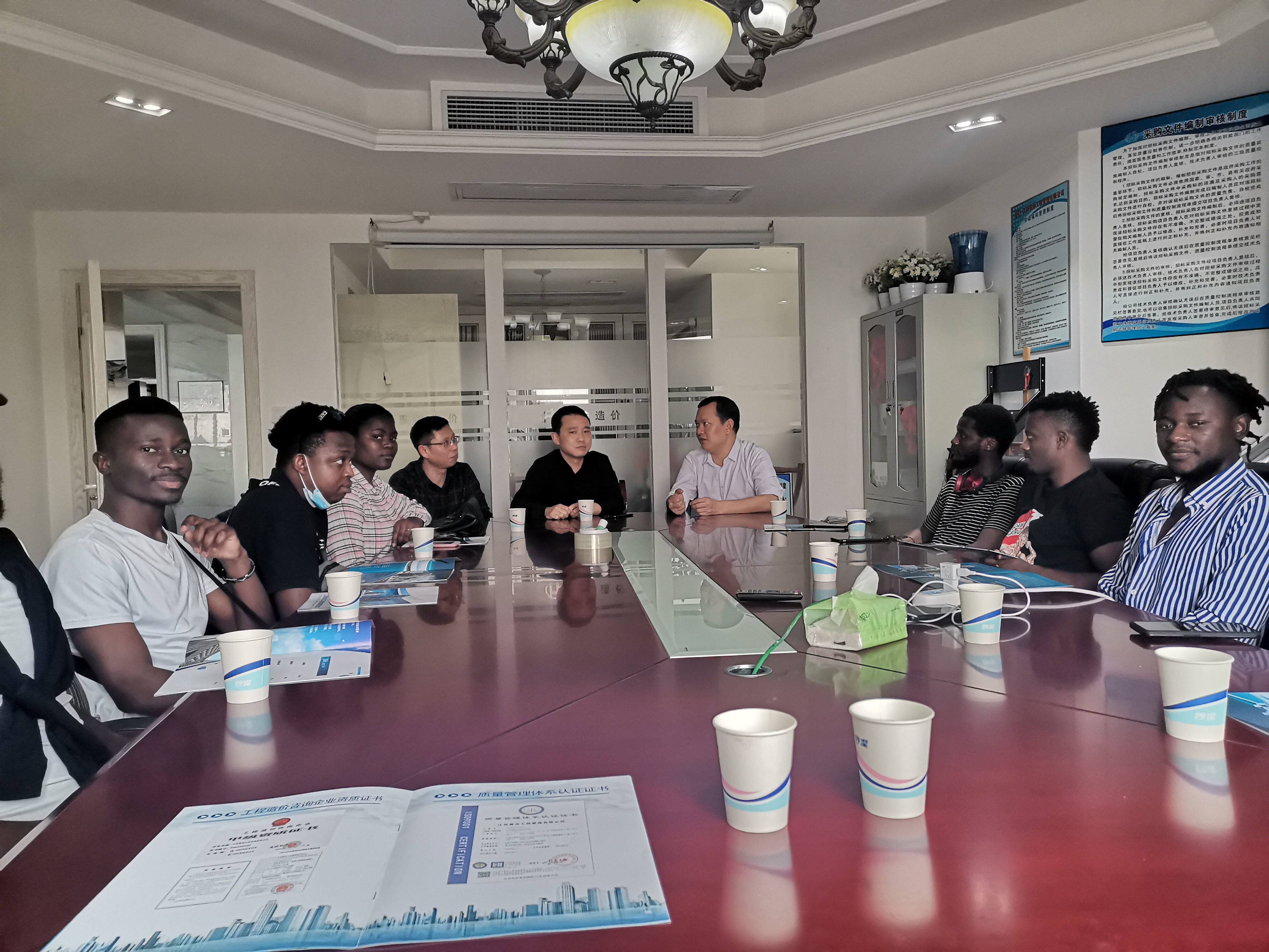 3月29日下午,国际学院2017级土木工程班留学生毕业实习动员大会在吉安市吉州区江西聚浩工程管理有限公司召开。该公司董事长刘光明,我院副院长梁斌、指导教师李久明副教授、教务科负责人及全体实习生参加会议。