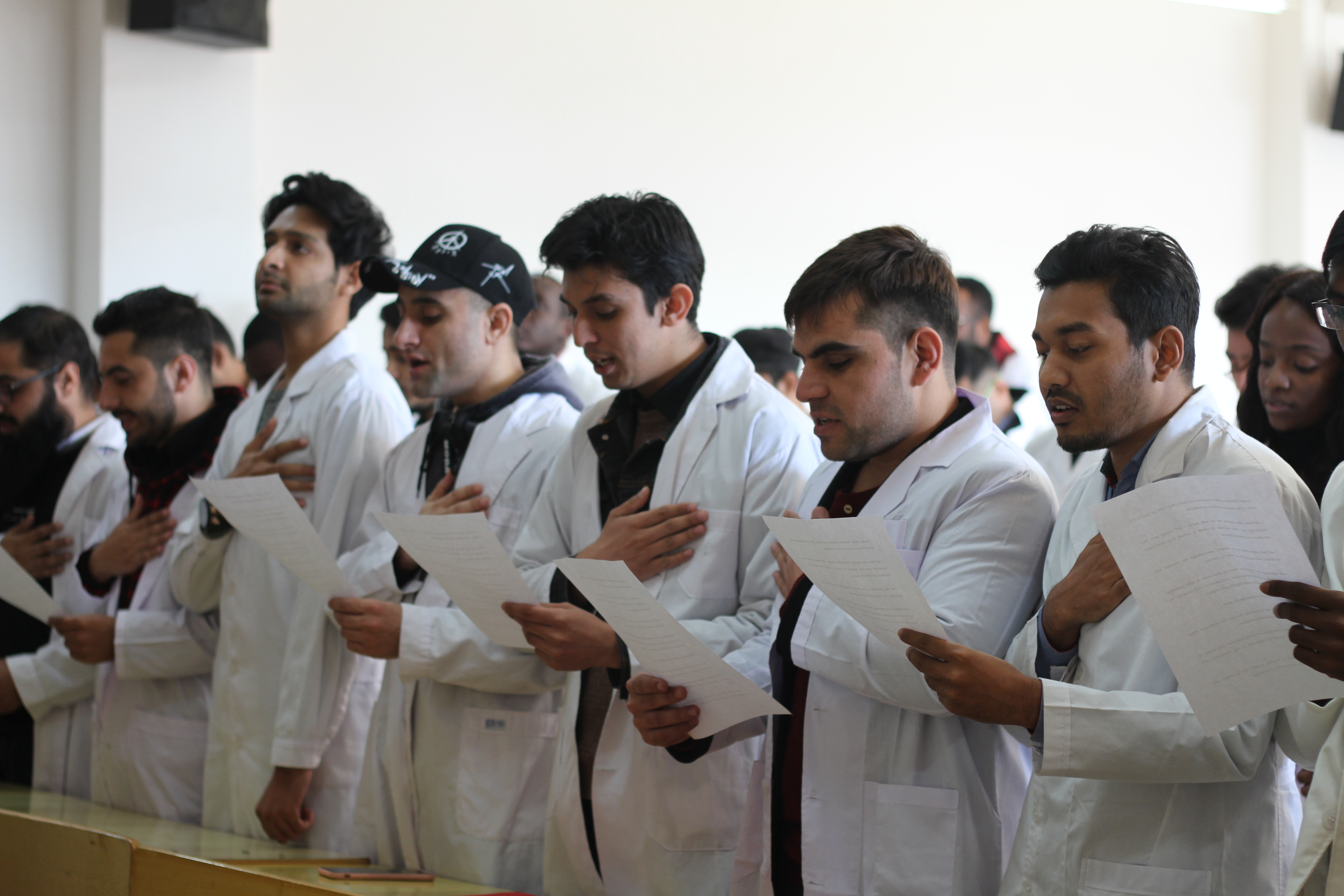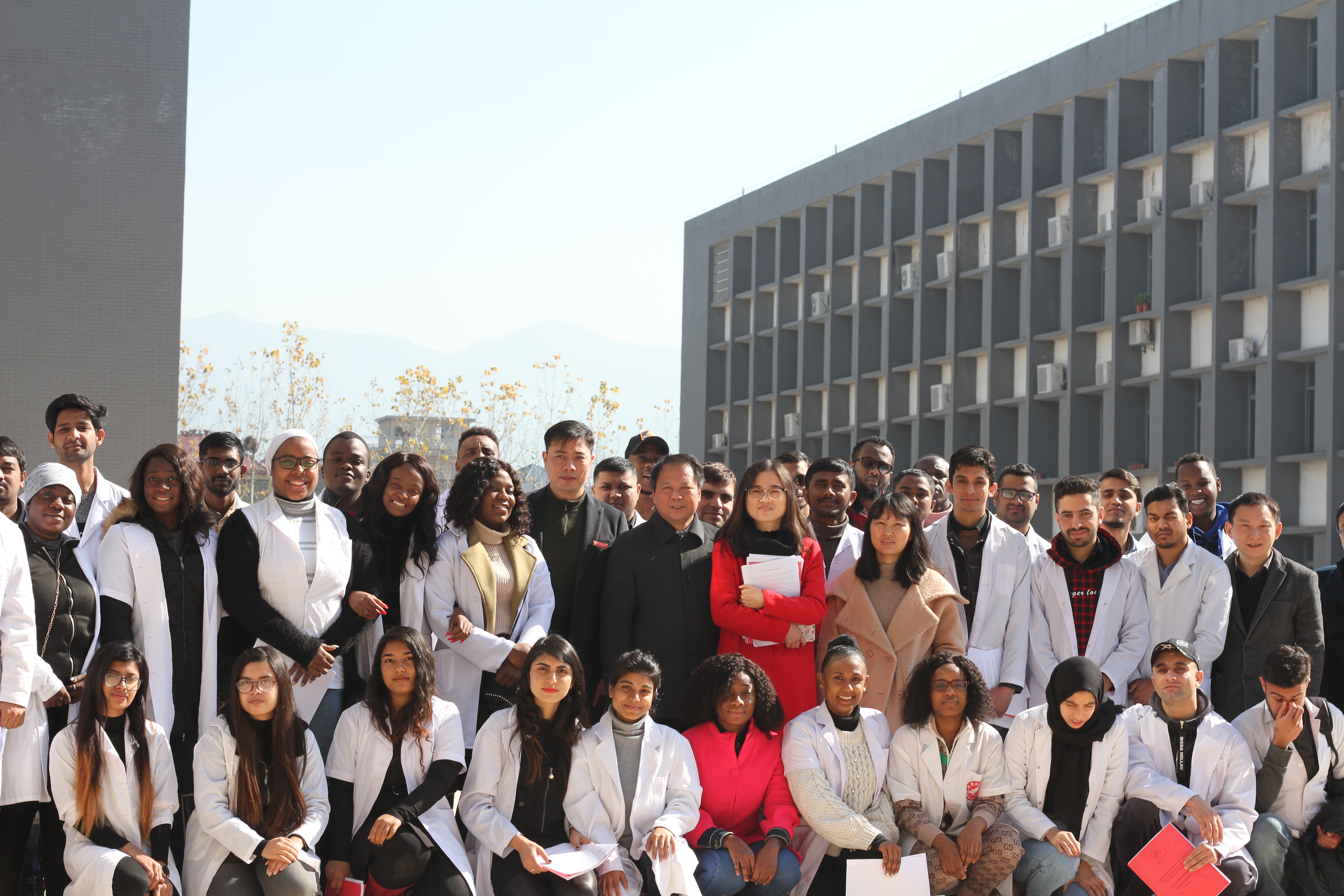 留学生代表Asif Iqbal做了精彩的发言。他感谢学校为他们创造的良好的学习和生活环境,感谢所有的老师对他们的谆谆教诲,并表示,一定会将在学校所学运用到医院实习当中,遵守实习规定,不辜负学校的期望和老师们的嘱托。