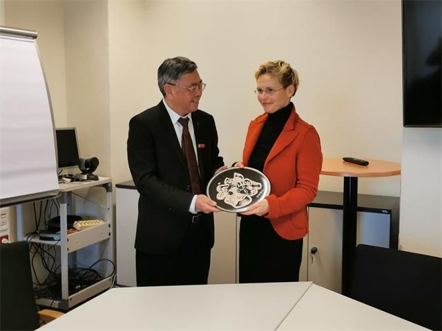陈小林与莱布尼兹大学孔子学院院长Steffi Robak互赠纪念品