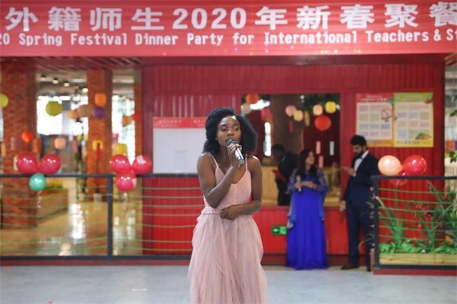 聚餐会后,意犹未尽的外国留学生操着纯正的汉语,唱上一首中国红色歌曲,跳上一段极富异域风情的舞蹈,用他们的激情和活力表达了对中国传统文化的热爱。