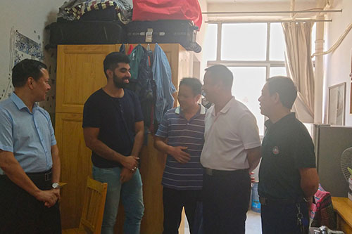 9月12日下午,校长助理孙宜学在国际处处长、国际学院院长苏小河及国际学院其他领导班子成员的陪同下,深入留学生宿舍一线检查指导留学生管理工作。