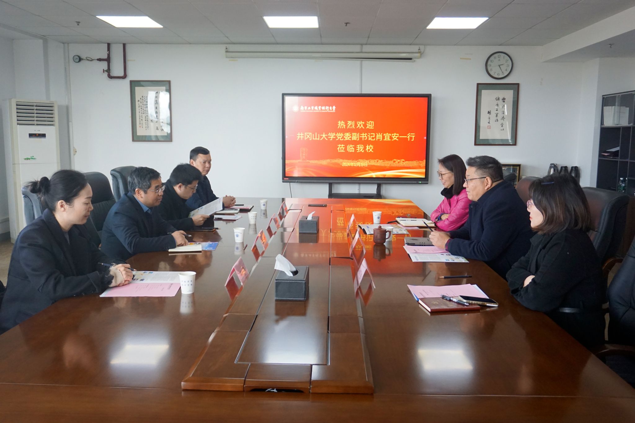 12月19日,党委副书记肖宜安、校长助理张赫率学校境外办学工作组相关成员一行4人赴南京工业职业技术大学调研境外办学等工作。该校党委副书记浦黄忠会见肖宜安一行并座谈,国际合作与交流处、教务处等职能部门负责人参加座谈。