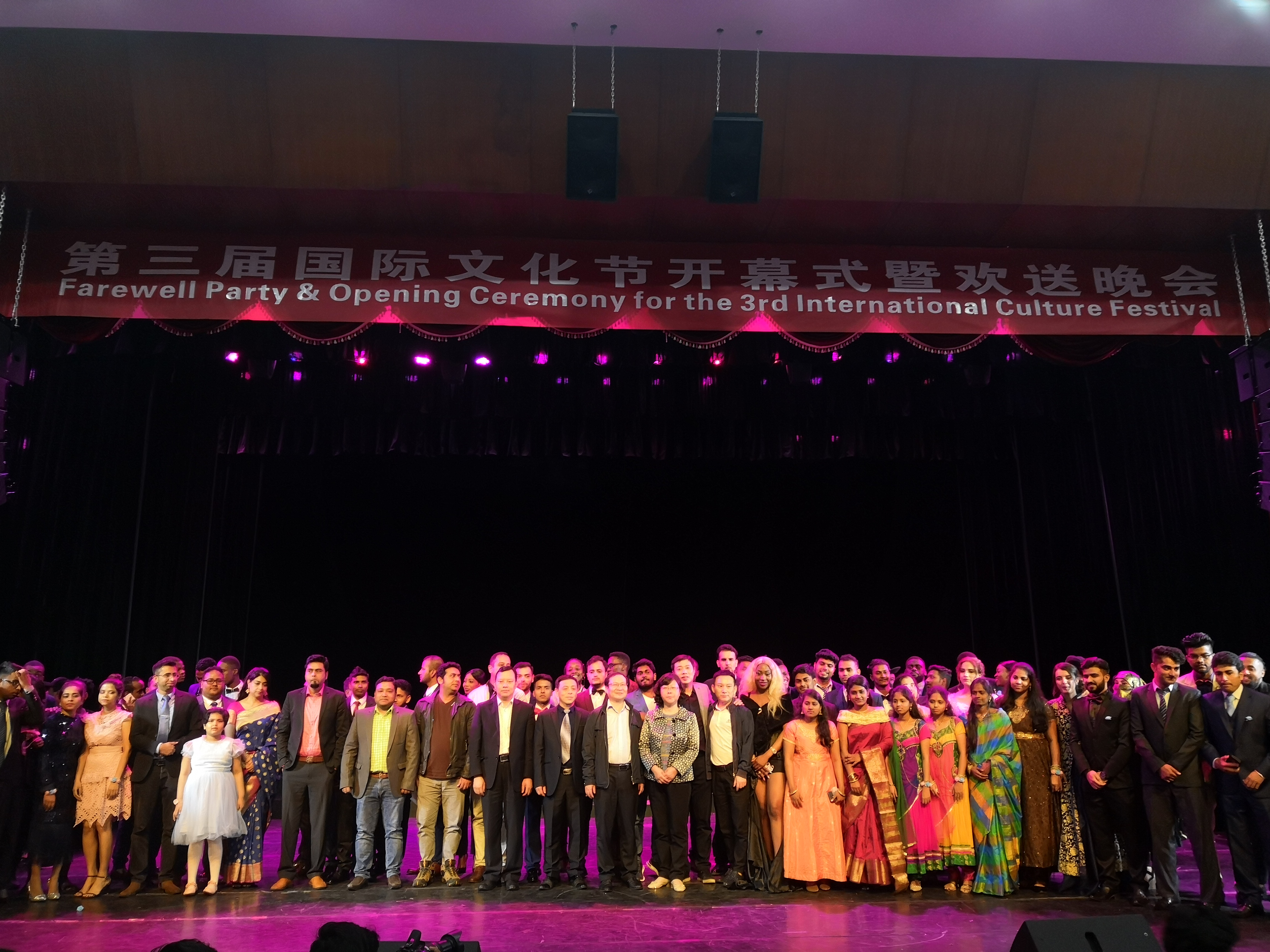 4月29晚,第三届国际文化节暨实习欢送晚会在艺术学院音乐厅开幕。校党委常委、副校长黄俭根、我院全体院领导和中外师生350余人参加。