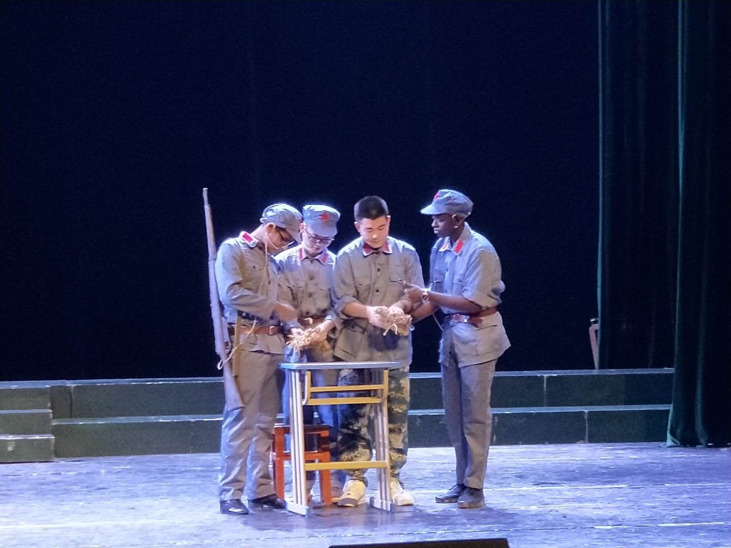 比赛中,参赛队对井冈山斗争时期的故事进行了演绎,将真情实感融入节目中,再现了先辈们大公无私、关心群众、艰苦奋斗和在艰难险阻中砥砺前行的精神。选手们的精彩表演,特别是留学生们对故事的理解和语言表达赢得了评委和观众的热烈掌声,展现了中外学生昂扬向上的精神风貌。经过紧张激烈的角逐,2017级临床医学班、2016级临床医学(2)班、2015级临床医学(2)班分别获得一、二、三等奖。比赛过程中,我院全体师生党员以党支部为单位穿插表演了红色家书朗诵。