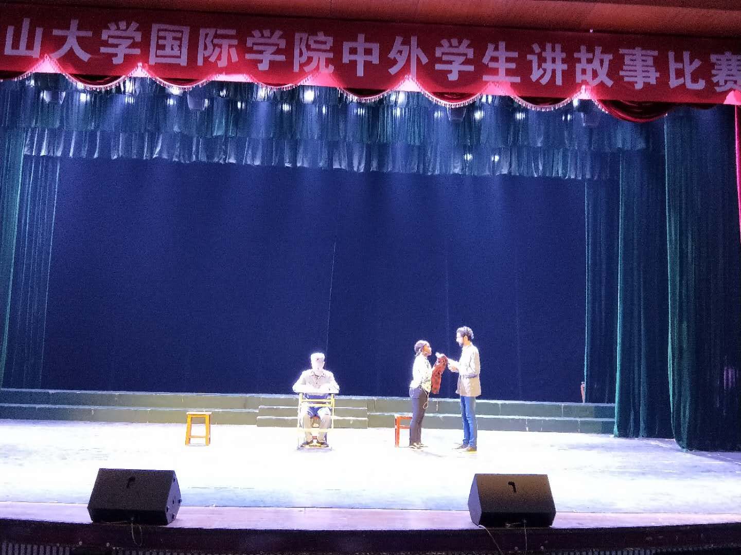 5月22日晚,我院举行中外学生讲故事比赛,留学生以班级为单位组队参赛,国际班学生参演并对参赛留学生选手进行指导。我院全体院领导、中外师生约350余人观看了比赛。