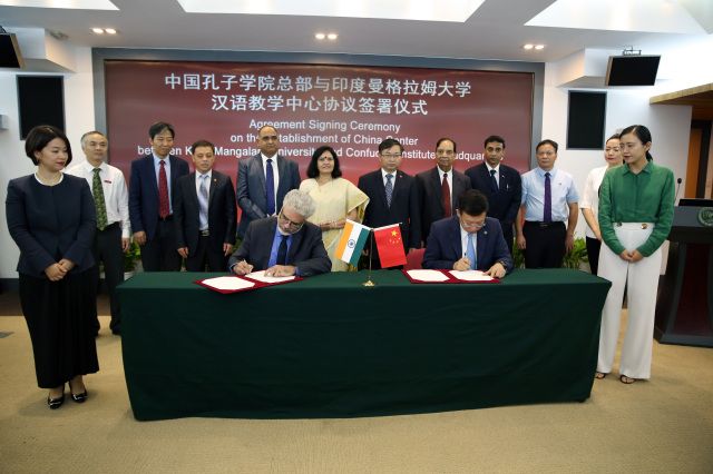 8月11日上午,我校与印度曼格拉姆大学合作共建的曼格拉姆大学汉语教学中心签约仪式在北京孔子学院总部举行。校党委副书记、校长曾建平率领国际合作与交流处相关人员出席签约仪式,与中国驻印度大使馆教育组官员以及前来参会的中印高校专家学者共同见证孔子学院总部和印度曼格拉姆大学正式签署共建汉语教学中心协议。