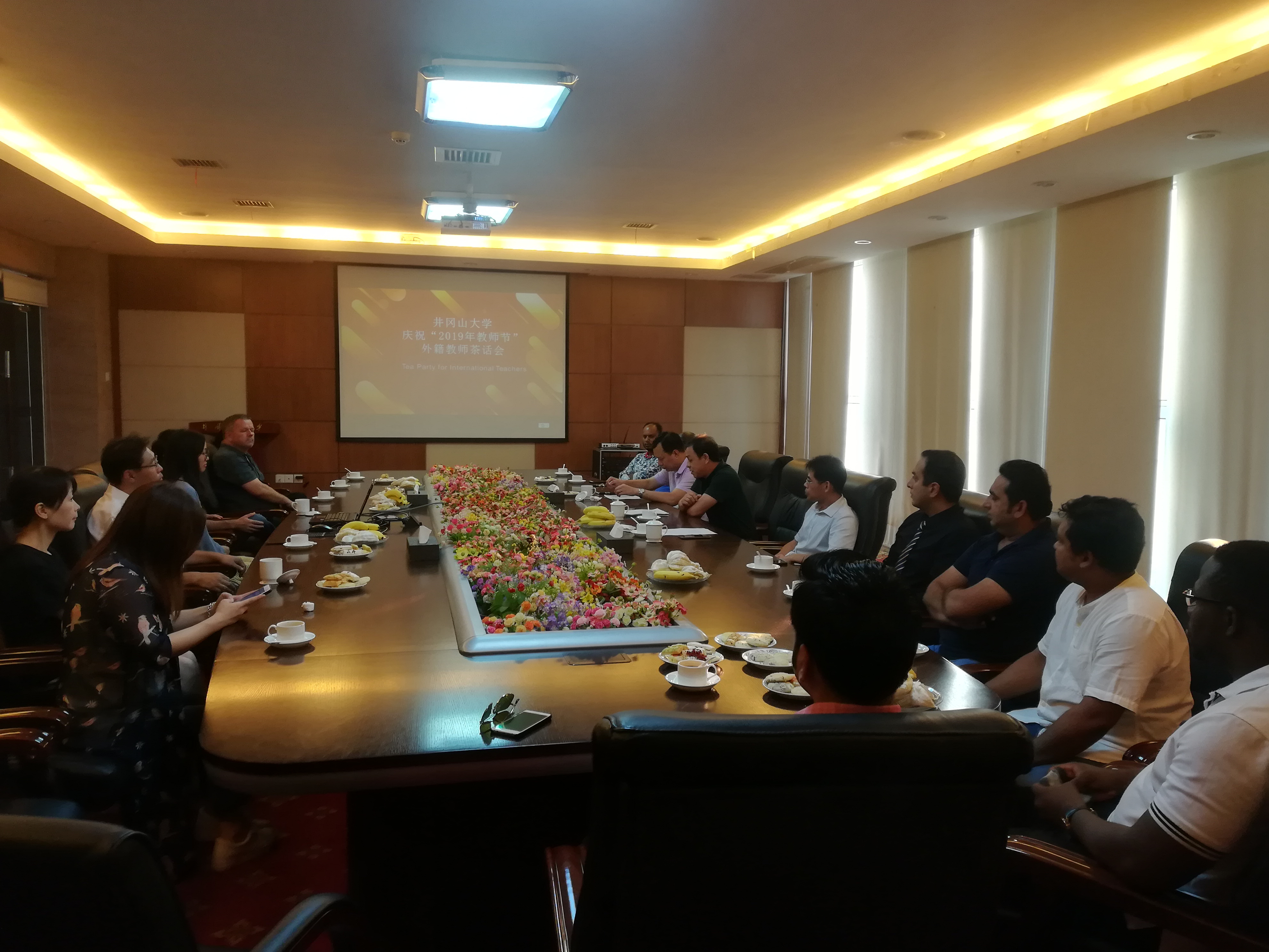 9月10日下午,在第35个教师节和中秋传统佳节来临之际,学校在新学术交流中心举行外籍教师茶话会。全体外籍教师欢聚一堂,共品茶点,畅叙情谊,欢度节日。人事处处长刘利民、国际合作与交流处处长苏小河、副处长梁斌及有关工作人员参加。