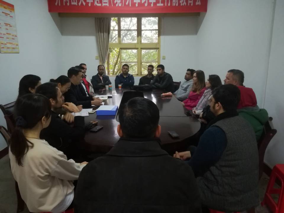 会上,外事科负责同志介绍了我校外教队伍的基本情况,对上学期外教工作进行了总结,对外教们为学校教学工作做出的成绩给予肯定,也指出部分外教在教学和日常纪律方面存在的问题。会议重申外教交通工具的备案管理和安全问题,强调在宗教信仰和意识形态领域的纪律要求,并就本学期的各项工作进行了布置。最后,梁斌副处长以“工作、责任、守法、安全、健康”五个关键词向全体外教强调加强交流合作、当好井大教师的重要性,并希望外教们不断改进教学方法,切实提升教学质量,为井冈山大学的事业发展做出更大的贡献。