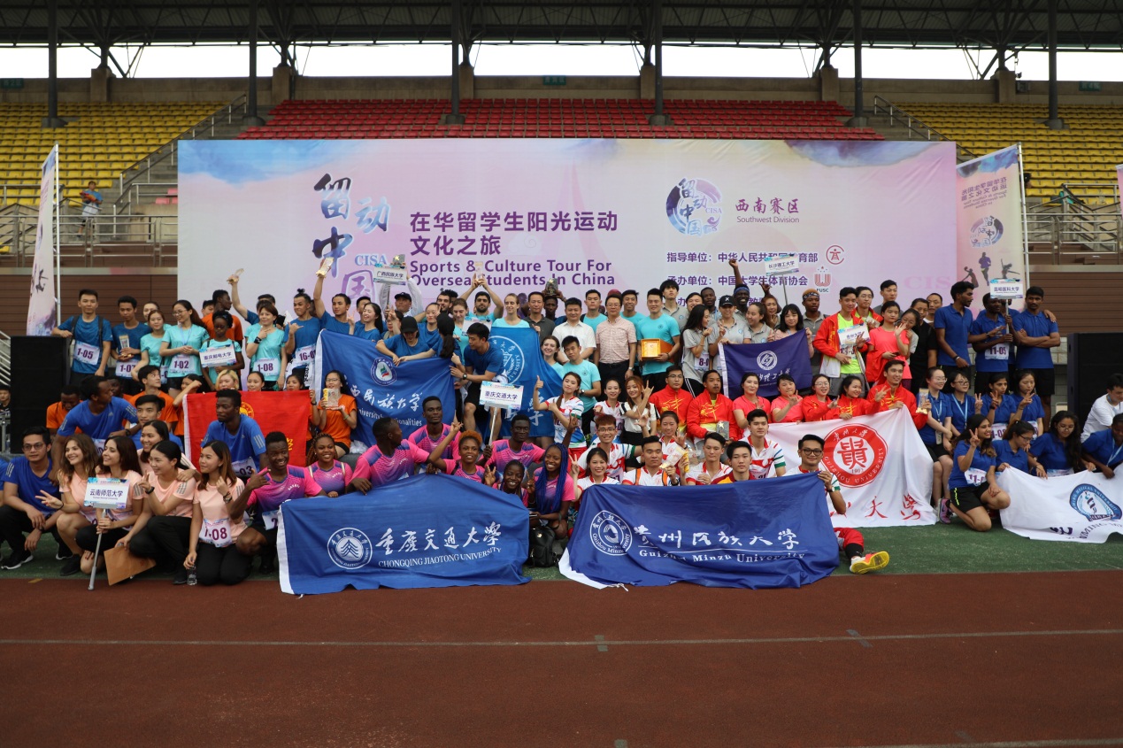 本次西南赛区比赛有来自重庆、江西、湖南、广西、云南、贵州等6个省市(自治区)的16支高校代表队齐聚一堂,先后进行了体育艺术展示、3*3篮球赛和定向越野三个项目的比赛,参赛队由来自9名来华留学生和2名中国学生组成。体育艺术展示,我校参赛队表演的《盾舞青春》荣获该项目第八名,留学生以协调灵动的舞姿、高难度的动作展现了江西永新盾牌舞的魅力;3*3篮球赛,我校学生奋力拼搏,荣获该项目第5名;定向越野将体育竞技与中国文化相结合,在比赛中,我校中外学生协同配合,荣获该项目第6名。最终,我校代表队获得团体总分第四名的好成绩。