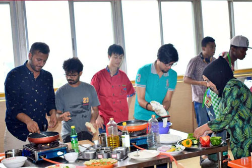 分别来自巴基斯坦、印度、加纳、赞比亚、尼泊尔等国的6名留学生组成三队参赛。为了更好的展现本国食物,争取好名次,留学生们积极踊跃,思维创新,在菜式方面都各具想法,拼盘造型创意百出。此次参赛加强了中外学生的沟通与交流,丰富了留学生的校园生活,展示了留学生别具一格的厨艺,对传播饮食文化具有重要的意义。(留学生办)
