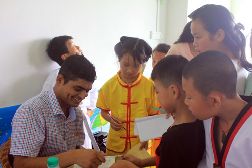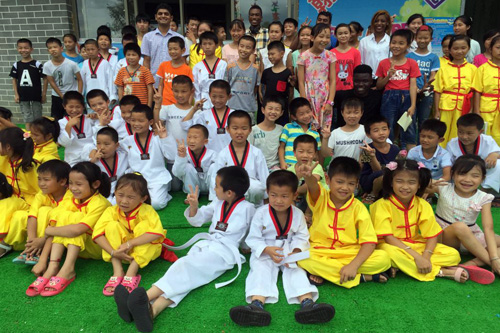 下午,留学生们与当地的小学生们开展了文化互动活动,来自赞比亚等4个国家的留学生们用简单的英语及图片展示了各自国家的风土人情及文化习俗,之后小学生们用英语问了一些简单的问题,活动在学生们的歌舞声中结束。