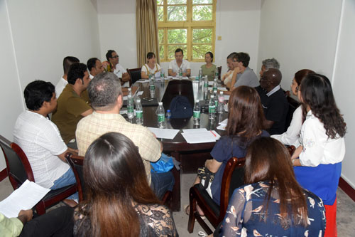 会议还安排了有关工作人员与全体外籍教师座谈交流,外教们对学校的教学和生活条件比较满意,大家就工作和生活中遇到的一些困难和问题畅所欲言。