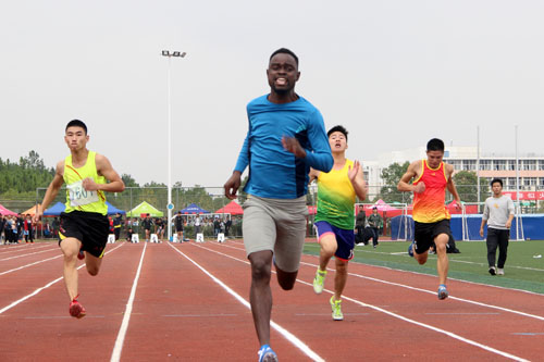 开幕式上,我院中国学生方阵与印度学生组成的人塔表演完美融合,将开幕式推上高潮,博得全声喝彩和热烈掌声。比赛场上,我院中外学生运动员们顽强拼搏,赛出了成绩,赛出了风格,创造了一个又一个好成绩,特别是男子甲组100米比赛中Kudzai取得了第一名的好成绩并打破了校运会记录,男子甲组4*100米接力赛遥遥领先于其他学院并荣获第一名。全体参赛运动员均有不俗表现,并始终保持着重在参与、积极向上的拼搏精神和乐观态度。
