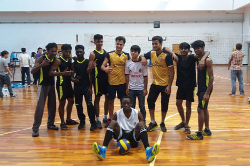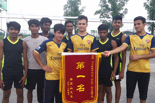 我院排球队队全部由留学生组成,主要来自印度、巴基斯坦、卢旺达等国家。他们在比赛中配合默契,团结一致,克服了因语言带来的沟通困难,每天坚持训练,小组赛、半决赛以全胜战绩决赛闯入决赛。