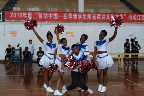 “留动中国--在华留学生阳光运动文化之旅”由教育部主办,参赛队员为中外学生,比赛分为各省海选赛、大区决赛和全国总决赛。根据比赛规定,各省海选赛的前3名参加大区决赛,大区决赛中的前3名参加全国总决赛。比赛项目为篮球赛、体育艺术表演和定向越野。我校派出了8名留学生(4男4女)和2名中国学生(1男1女)参加本次的江西省内选拔赛。