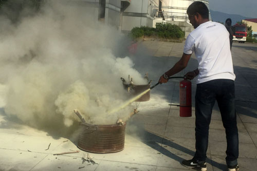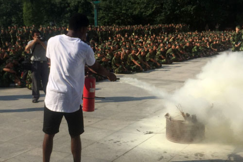 我院共组织了15名留学生参加了本次演练活动。演练前,消防支队刘参谋讲解了有关火灾现场的应急处理方案,灭火器的原理、基本操作方法及注意事项等。在认真听完讲座及观摩后,我院留学生亲自体验了现场灭火的过程,面对熊熊烈火,表现十分勇敢,按照灭火的步骤和方法将大火迅速扑灭。