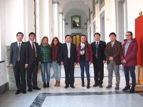 在意大利期间,校长曾建平会见了中国驻意大利大使馆教育参赞罗平先生。罗平对我校来到意大利,与意高校合作交流表示欢迎,他愉快地回忆了随教育部机关党校培训班在我校参加红色培训的经历,表示将全力支持帮助学校与意大利教育界的友好交流合作。他还向我们介绍了在意的中国留学生和意大利经济、教育、文化发展的相关情况。