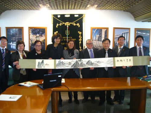 在意大利罗马第二大学,校长Novelli教授、副校长Piga女士、我校叶子飘合作教授Bernabei等与代表团一行进行了友好座谈。双方正式签署了合作备忘录,就物理科学、医学的科研交流合作与意大利语言学习、本科生3+1项目交流达成了共识。代表团一行参观了原子分子物理研究中心,听取了中心教授就太空粒子的活动在地震预测中的研究最新进展,并就物理领域的科研合作达成了意向。