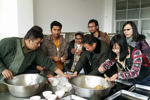 2月6日是农历大年二十八,在校的领导陈小林、黄剑根以及有关部门负责人,与留校的外籍教师、300多名寒假留校的留学生一起,共同欢度2016年新春佳节。