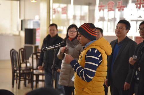 留学生代表大勇进行了发言,对学校的关怀表示感谢,并祝愿学校在新的一年里各项事业更上一层楼。