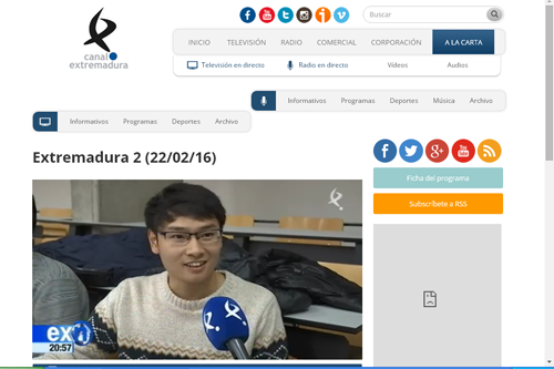 2月16日,西班牙当地电视台对赴西班牙埃斯特马杜拉大学的中国留学生进行了采访,并专访了我校伊拉斯谟+项目同学。同学们一致表示,感谢学校给了他们这次赴西学习的机会,将带着学校的嘱咐圆满完成学习交流任务。埃斯特马杜拉大学希望有更多优秀的井冈山大学学生来校学习交流,也希望井冈山大学和埃斯特雷马杜拉大学的合作更加深入。