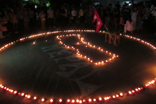 4月26日晚7:00,国际学院组织全体尼泊尔学生及其他国别的留学生为尼泊尔地震灾区举行祈福活动。参与这次活动的留学生深受感动,尼泊尔籍学生大卫说:“看到大家来为我的同胞们祈福,我很高兴,灾难无情人有情,感谢井冈山大学”。