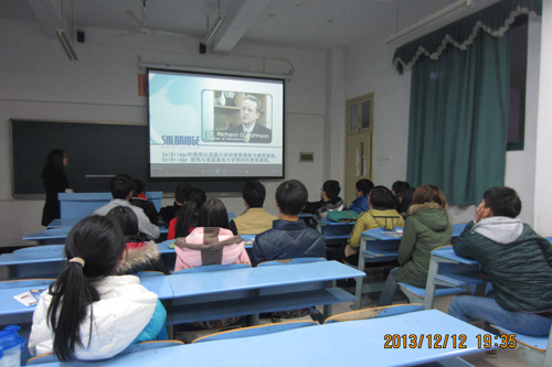晚上,周静老师举行了说明会。介绍了两校合作开展的“2+2”学生自费留学项目和商科专业全额奖学金项目,展示了又松大学的学习和生活环境,并与同学们分享了正在该校参加奖学金项目的我校商学院王姣姣同学的学习和生活视频。