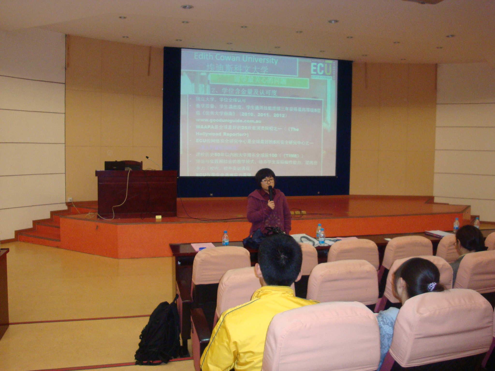 3月28日,我校举行学生自费及短期文化交流项目宣讲会。来自英国考文垂大学、斯望西大学、澳大利亚埃迪斯科文大学、红中汉语学院的项目代表,向在校师生介绍自费出国留学及短期文化交流项目事宜。