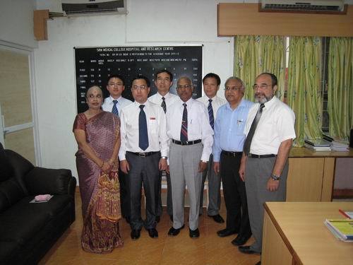 7月9日,在印度夏尔达大学,肖长春一行会见了夏尔达大学副校长JP Gupta教授,陪同会见的有夏尔达大学校长顾问M. P. Jain教授,国际交流处处长A. Daryani,人力资源部主任P. K. Mitra,医学院院长P. Gupta教授,商学院教授A. Kumar,商学院教授M. Barbas等。Gupta副校长对肖长春副校长一行来到夏尔达大学进行访问和交流表示热烈欢迎,他介绍了该校概况以及各学院的情况。肖长春对夏尔达大学的热情接待和周密安排表示感谢,他介绍了井冈山大学的基本情况以及在对外合作与交流方面的做法。双方进行了友好协商,在设置机构加强合作、鼓励学术交流、交换师资、互派老师访学、共同培养本科生、进行联合科学研究活动、建立汉语教学基地等方面达成了初步合作意向,两校签署了《井冈山大学与SHARDA大学谅解备忘录》。肖长春一行还参观了该校医学院及附属医院。