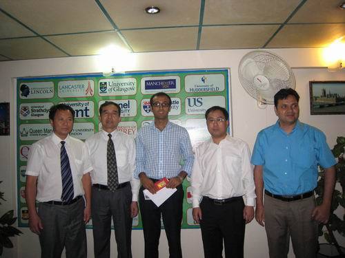 7月14日,在巴基斯坦卡拉奇经济与技术学院,肖长春一行会见了卡拉奇经济与技术学院校长M.K. Husain,陪同会见的有卡拉奇经济与技术学院副校长S.I. Hyder教授,计算机信息科学学院院长M.K. Khan、计算机信息科学学院教师M.Q. Pasta等。Husain校长对肖长春副校长一行前来访问和交流表示热烈欢迎,并简要介绍了卡拉奇经济与技术学院的概况。肖长春对卡拉奇经济与技术学院的热情接待表示了感谢,他介绍了井冈山大学的基本情况以及合作意向。接着,双方就具体的合作项目进行了讨论。经过交流和协商,两校签署了《井冈山大学与卡拉奇经济与技术学院谅解备忘录》,主要致力于达成以下意向:在卡拉奇经济与技术学院成立井冈山大学的汉语教学基地或孔子学院;鼓励学术交流和大学之间的合作,在共同感兴趣的领域里进行联合科学研究活动,尤其是经济学、会计学、社会工作、工程学等专业;采取一定的模式联合培养各种学历的学生,比如“2+2”、“3+1”、“学生交换”、“专升本”、“本升研”等模式;共同发展两校学生的各类非学历短期培训;邀请教授和研究学者进行学术访问和进修;互相聘用教师进行教学和训练;邀请学校校长或访问团互访;其他共同商定的合作形式等。