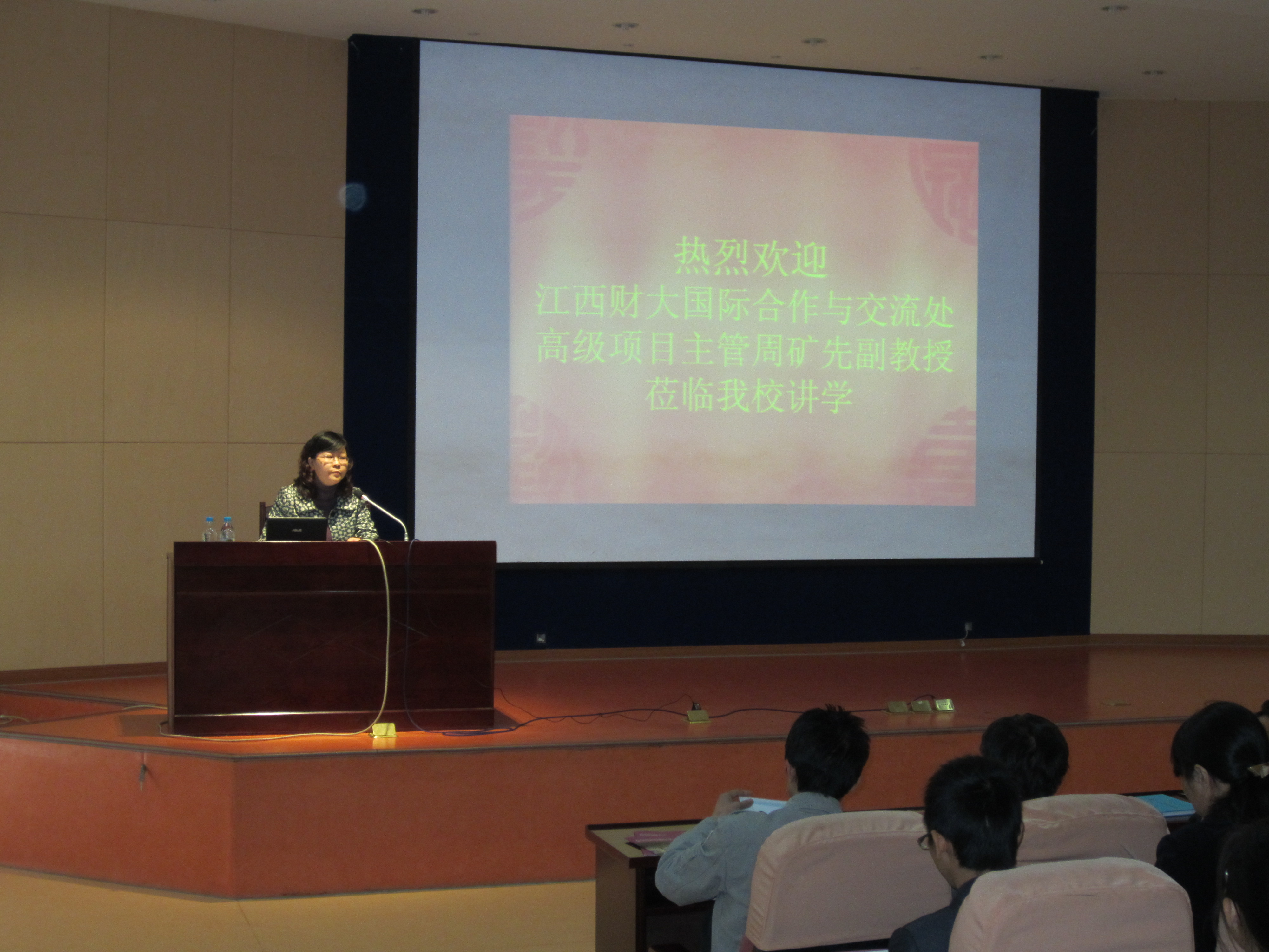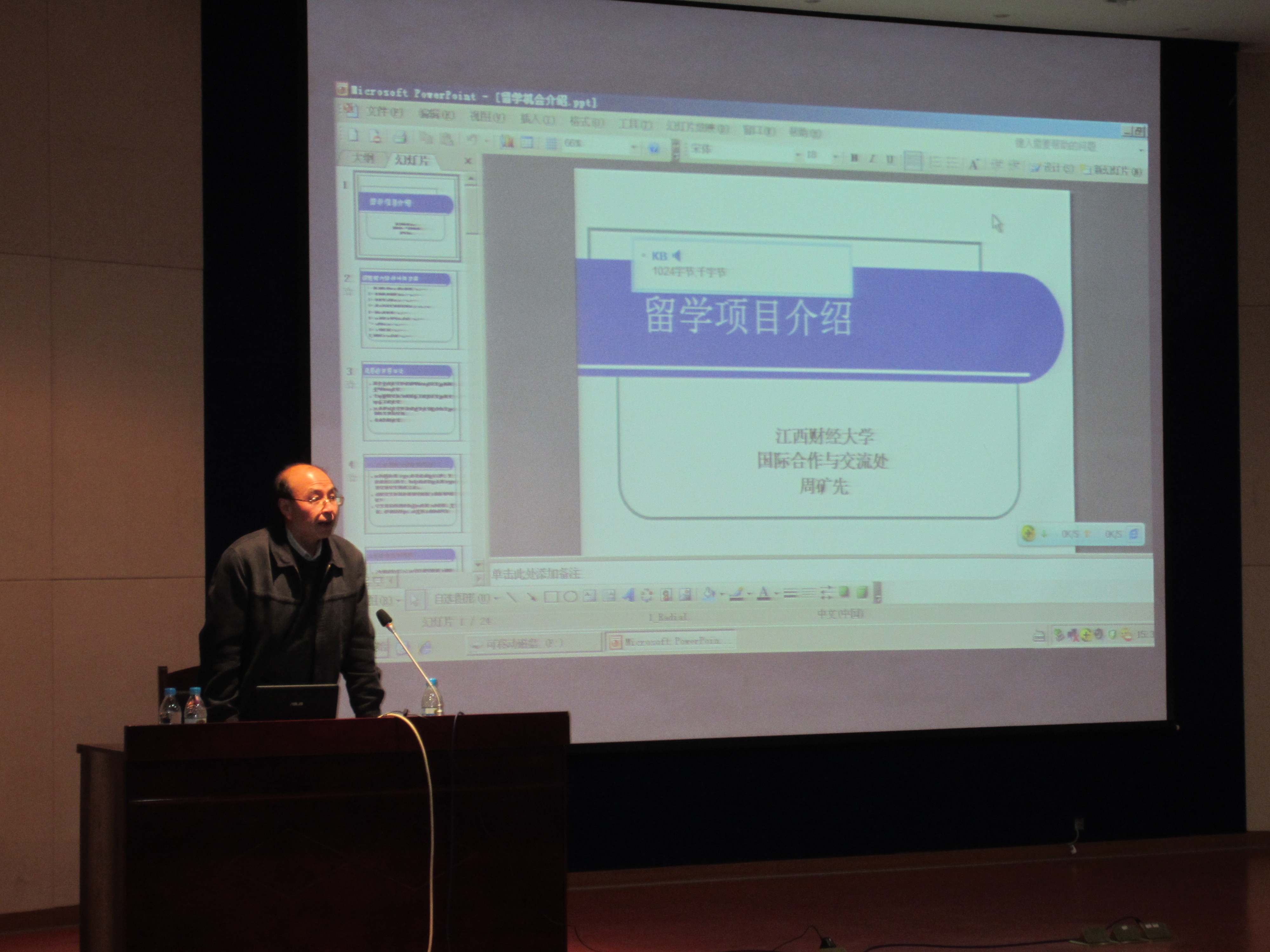 下午,该处出国留学高级项目主管周矿先副教授应邀为全校师生举办出国留学知识讲座。周教授的讲座结合江西财大学生留学项目的开展情况,介绍了出国留学项目的类型;接着周副教授从出国有什么好处,如何留学及学分转换等学生特别关注的问题作了细致的讲解;最后,周教授还热情诚恳地解答了学生的现场提问,并且鼓励师生要学好英语,扎实专业基础,做好出国前的准备。
